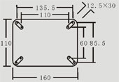 各部件经严密设计,由底板、转盘、支架、刹车件组成。底板厚12mm,安装尺寸如右图。